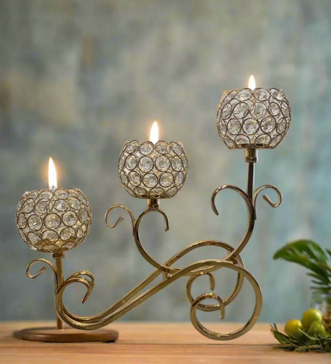 3 Steps Golden Crystal Candle Stand Holder for Home Decor