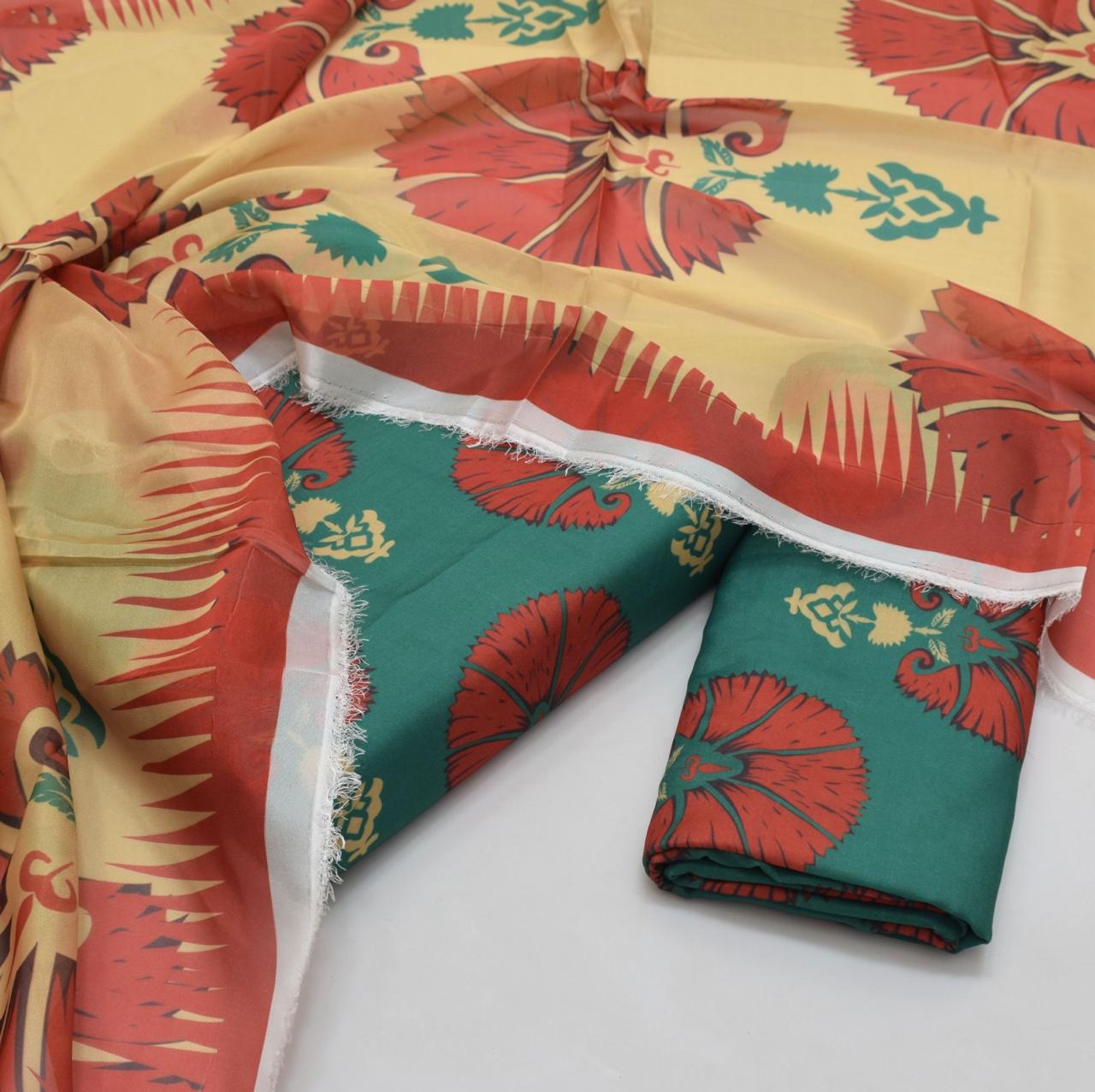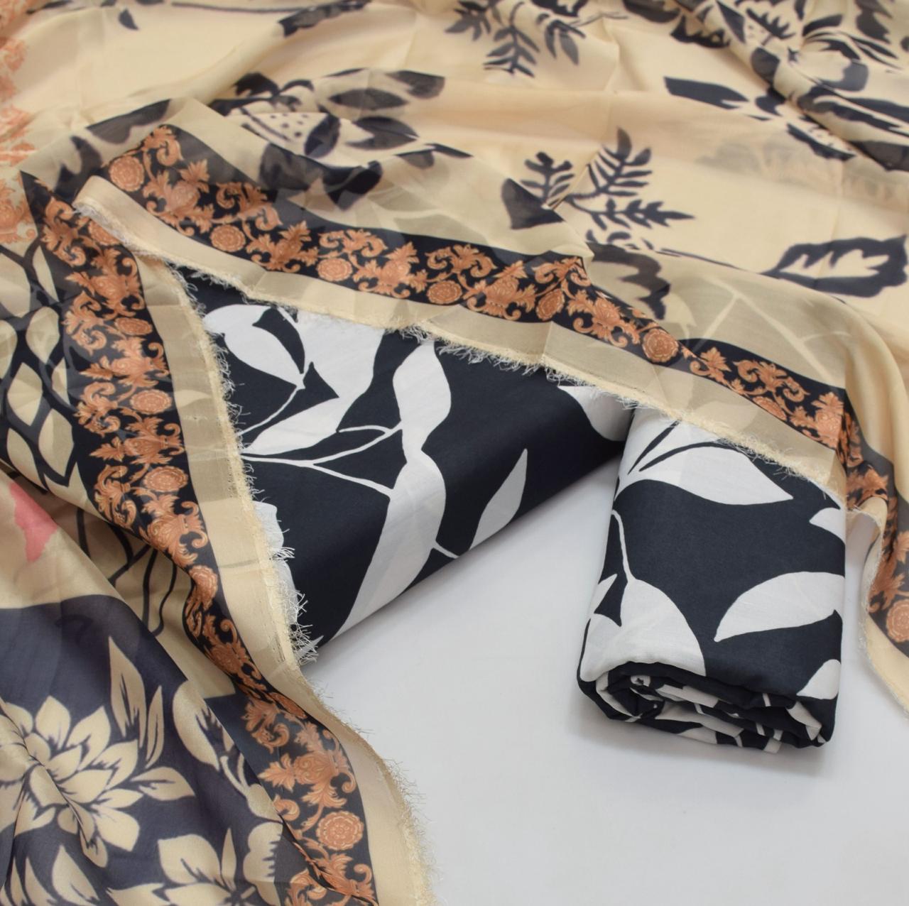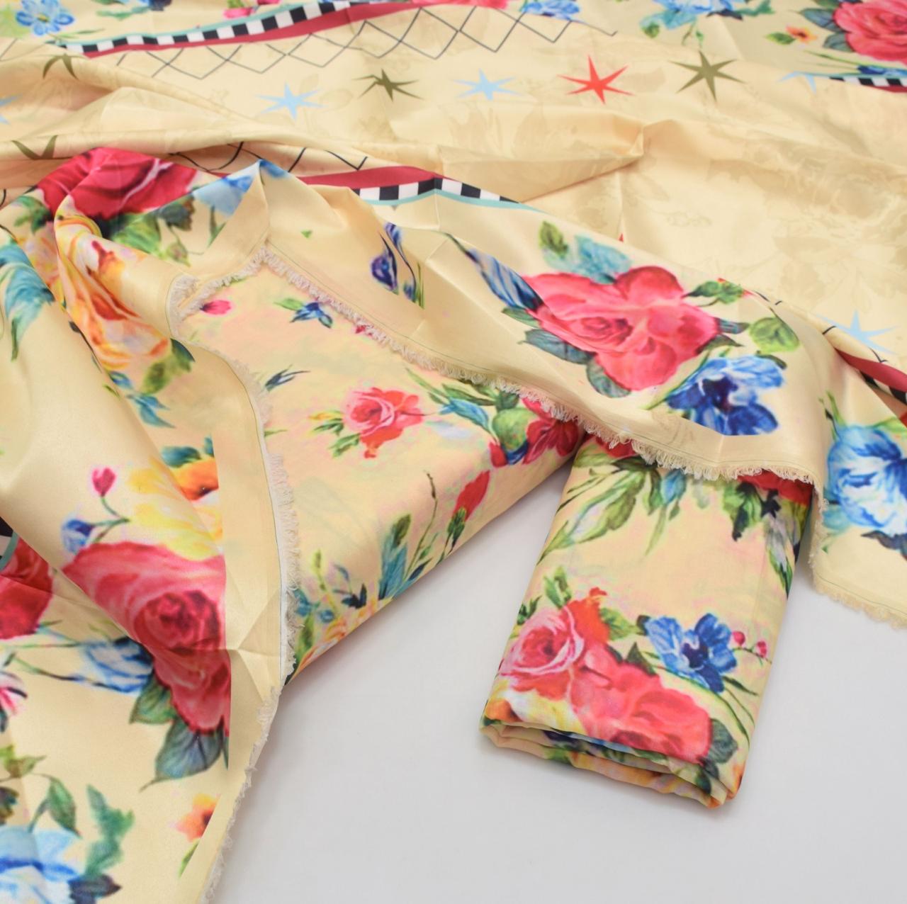 3PC Unstitched Swiss Lawn Suit – Digital Printed Shirt & Trouser with Silk Printed Dupatta (Trending Design)