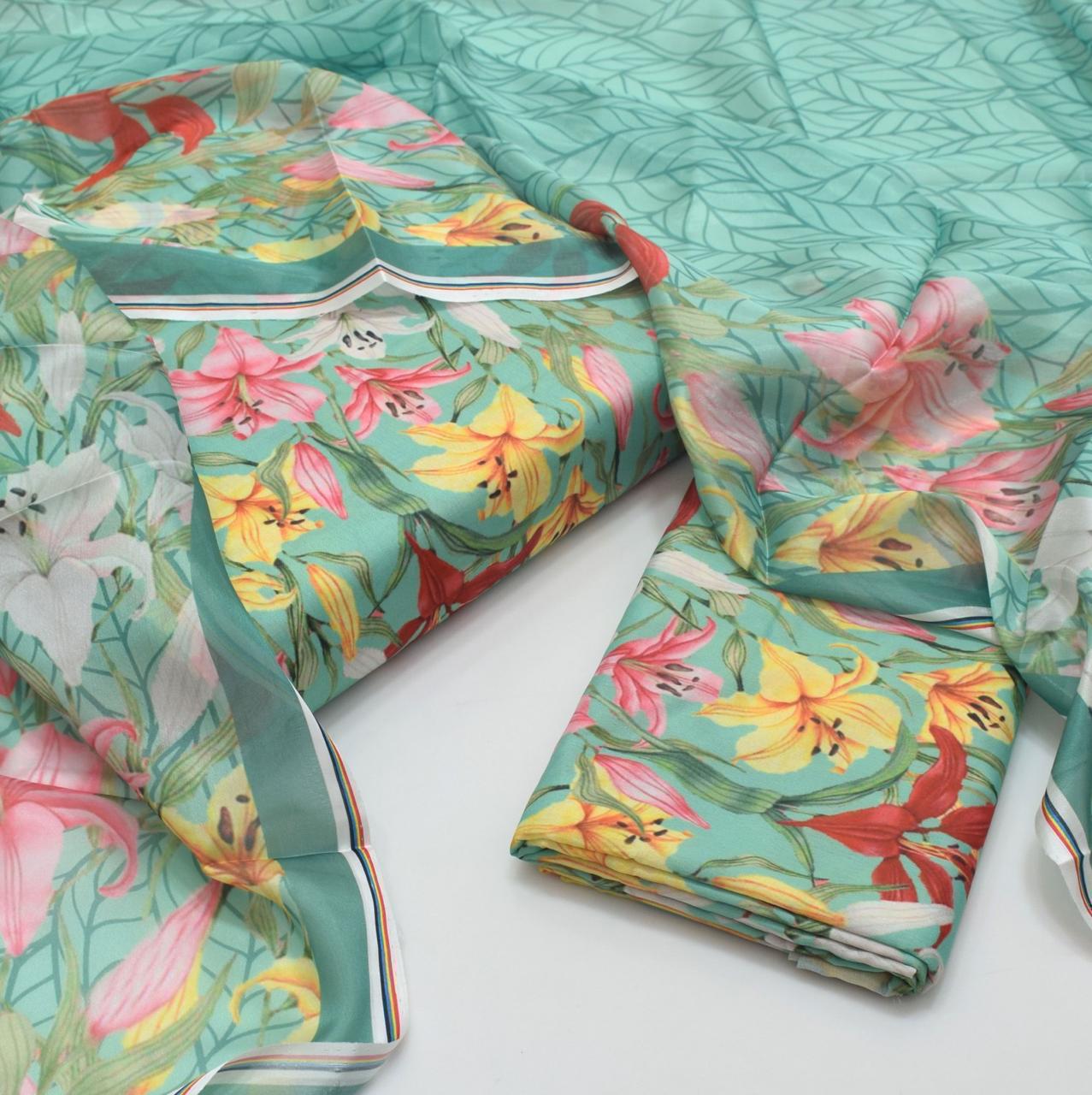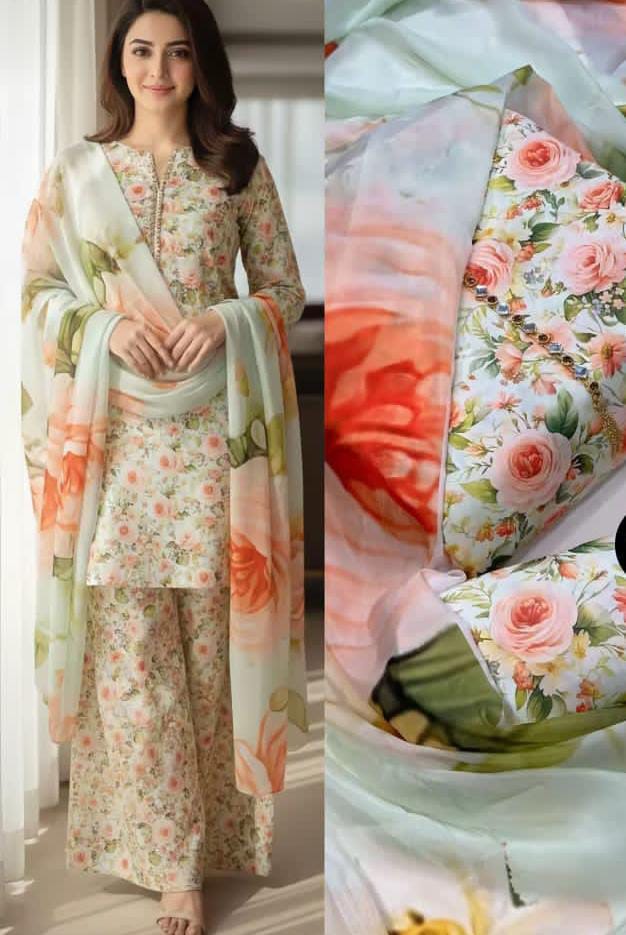 The beautiful digital prints and luxurious silk dupatta create a graceful and stylish look, ideal for casual wear, festive gatherings, and summer events.