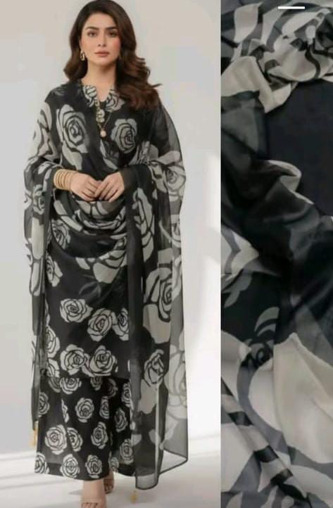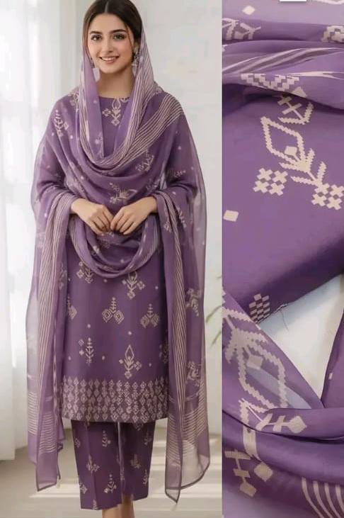 Upgrade your wardrobe with this 3PC Unstitched Trending Design Suit, crafted for elegance and comfort. 🌸✨